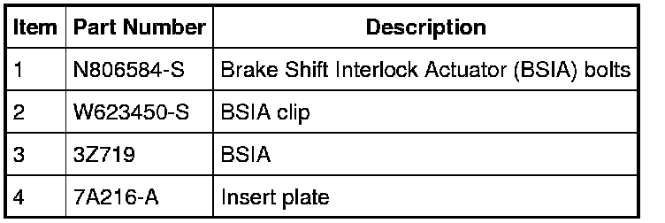 2. Remove the insert plate and the Brake Shift Interlock Actuator (BSIA) bolts.