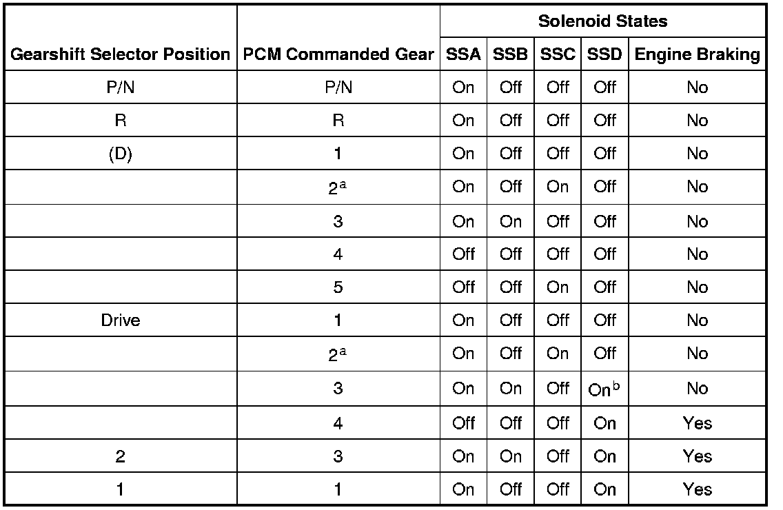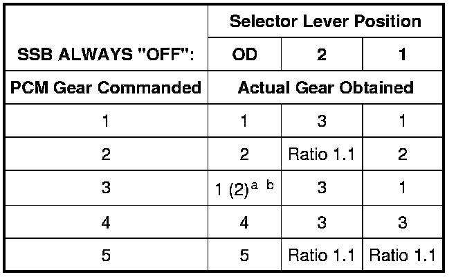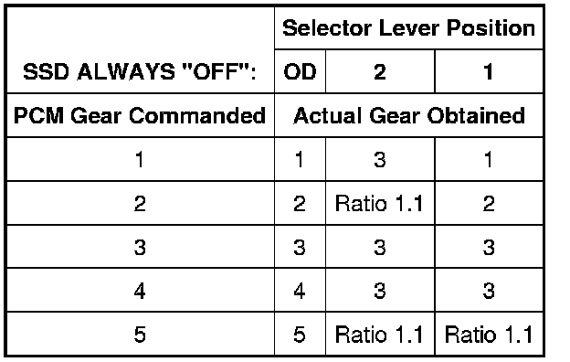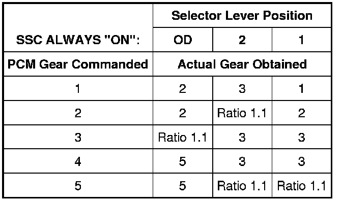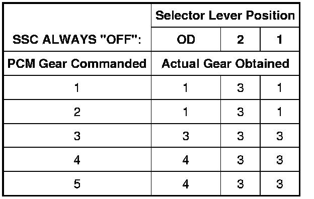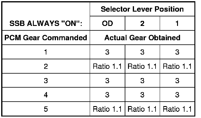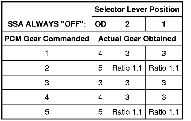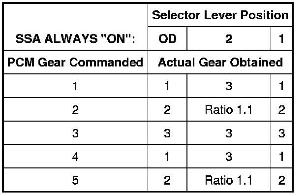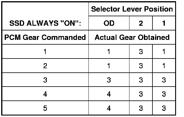 Shift Solenoid Failure Mode Chart "Always Off"