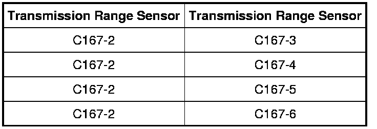 NOTE: Refer to the Transmission Range (TR) Sensor Diagnosis Chart within the Transmission Connector Layouts Transmission Connector Layouts procedure.