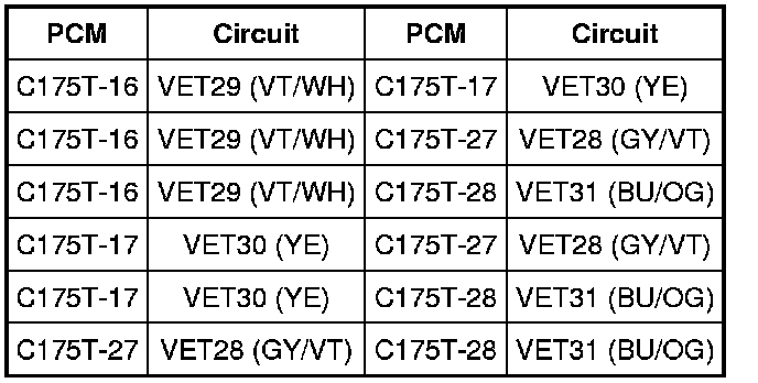 - Measure the resistance between C175T-27 and C167-3 VET28 (GY/VT), harness side.
