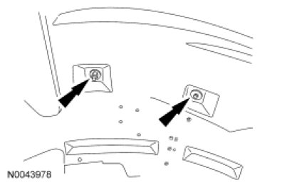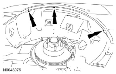 1. NOTE: The RH front fender splash shield electrical connector locators must be disconnected from the splash shield prior to splash shield removal. The LH front fender splash shield vacuum lines must be disconnected from the vacuum storage reservoir prior to splash shield removal.