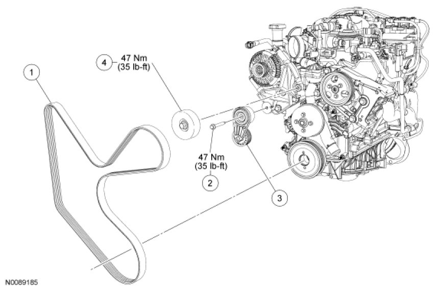 Front End Accessory Drive (FEAD) Exploded View - 2.3L without A/C