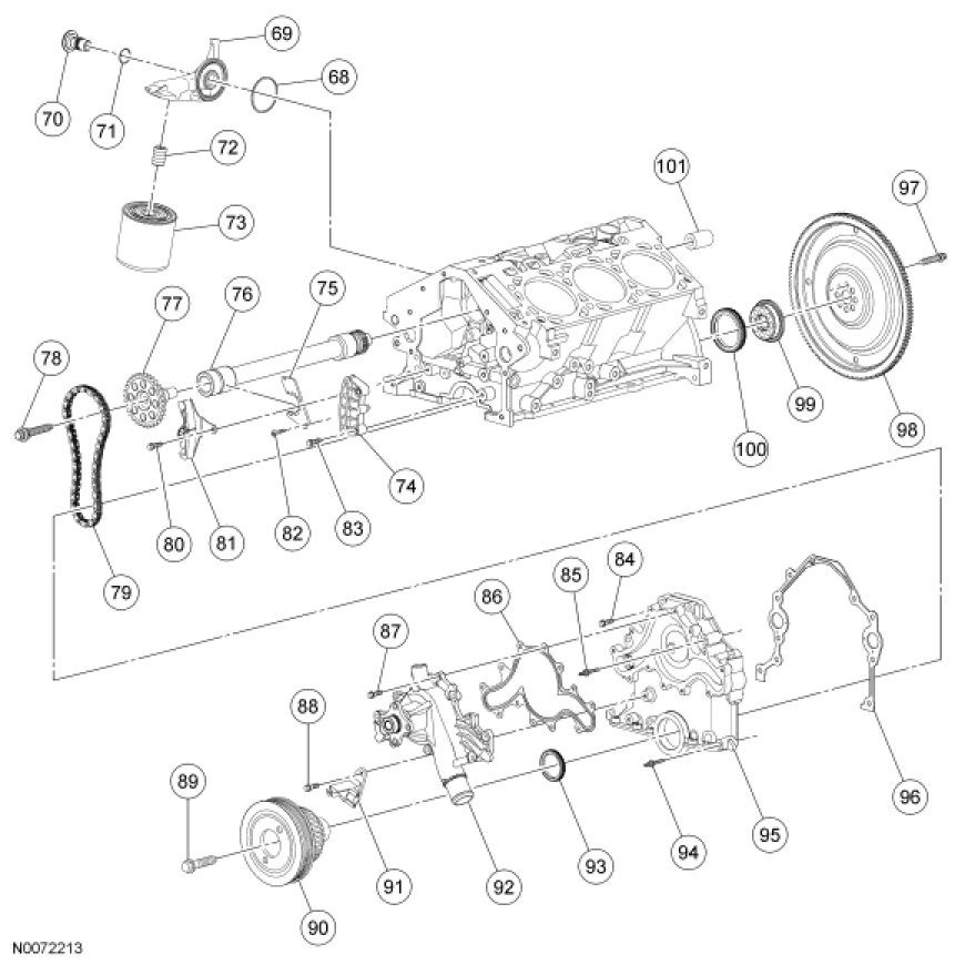 NOTE: The Crankshaft TDC Timing Tool must be installed on the damper and should contact the engine block. This positions the engine at Top Dead Center (TDC).