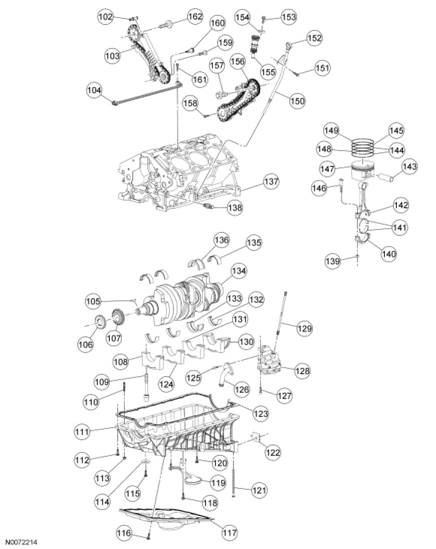 NOTE: During engine assembly it may be necessary to check the bearing clearances and crankshaft end play. For additional information, refer to Engine.