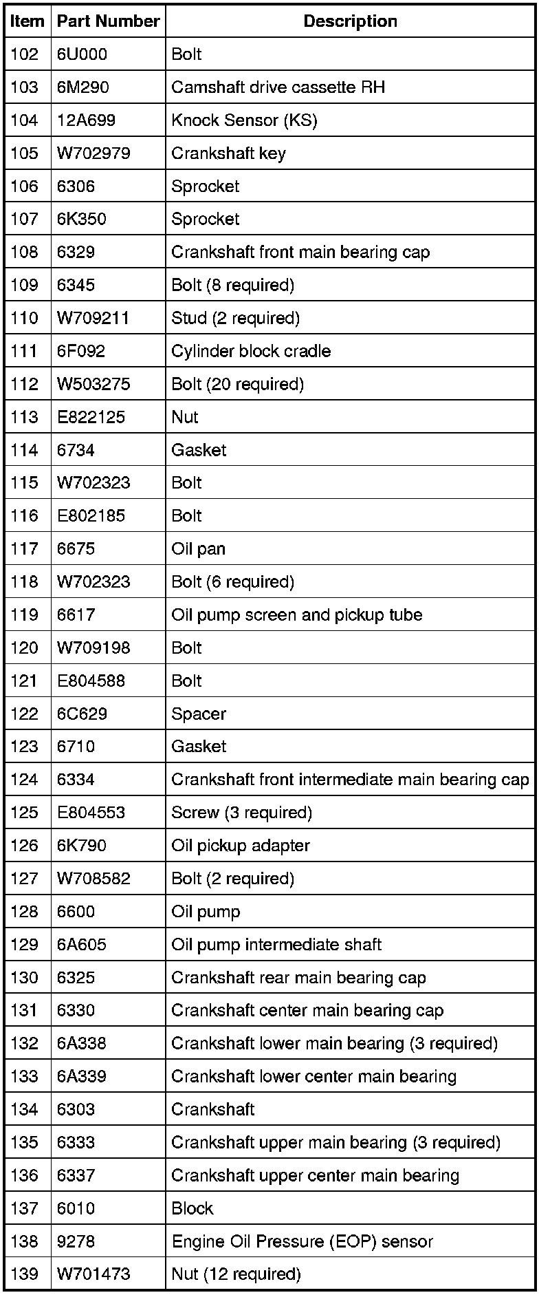 57. NOTE: The cylinder block cradle to the cylinder block alignment must be within a maximum mismatch of 0.25 mm (0.01 in) cylinder block cradle underflush or 0.05 mm (0.00196 in) cylinder block cradle protrusion.