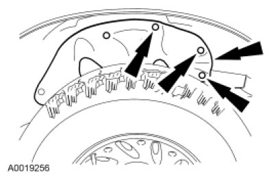 8. Remove the retaining pins and position the inner fender well splash shield aside.