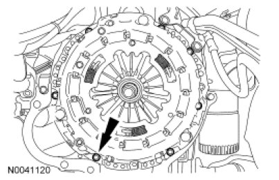 and the clutch pressure plate. Install the 6 bolts and tighten in a cross pattern sequence.