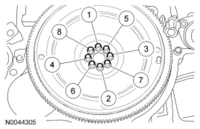 and install the 8 new bolts. Tighten the bolts in the sequence shown in 3 stages.