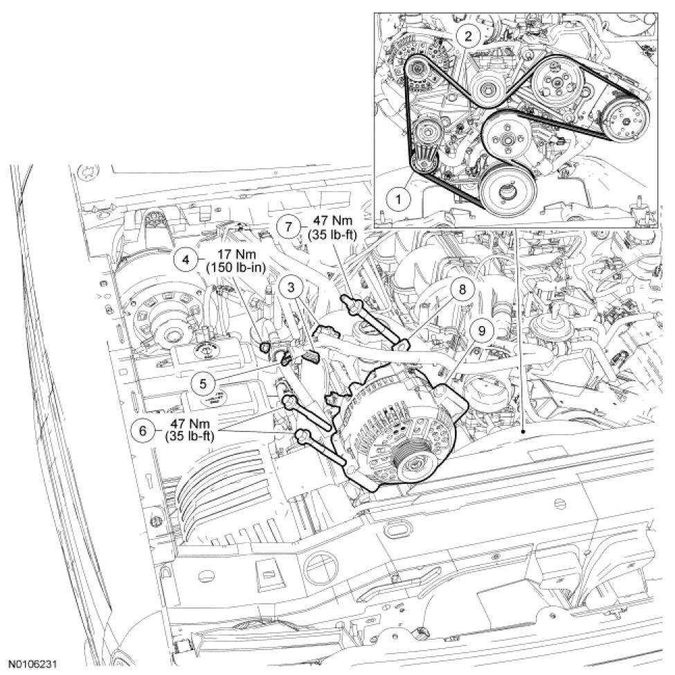 3. Rotate the Front End Accessory Drive (FEAD) belt tensioner counterclockwise and position the accessory drive belt aside.