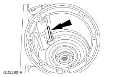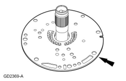 65. NOTICE: The chamber on the inside edge of the small gear must be up when in the pump housing gear pocket. The dimple on the larger gear must be down when in the pump housing gear pocket. Incorrect installation can result in transmission damage.