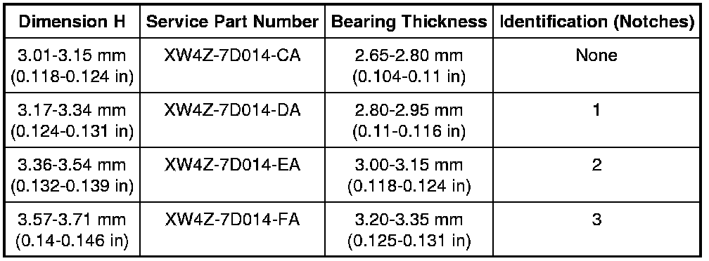 36. Add dimensions C and G. This total is dimension H. Use the following chart to select the correct No. 4 thrust bearing. Reference end play is 0.20-0.54 mm (0.007-0.021 in).
