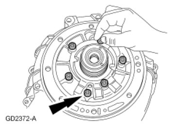 2. Temporarily insert the input shaft and gently wiggle it until the center support is seated against the case shoulder, then remove the input shaft.