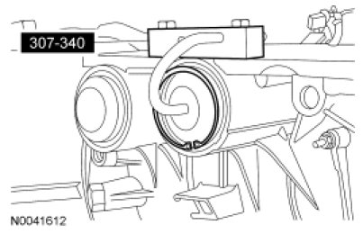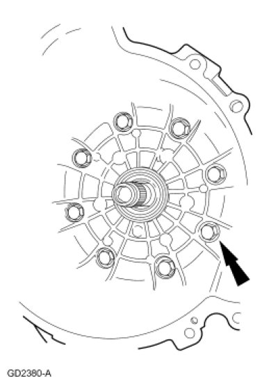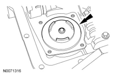3. WARNING: Secure the torque converter in the transmission during removal or installation. The torque converter is heavy and may result in injury if it falls out of the transmission. Failure to follow this instruction may result in serious personal injury.