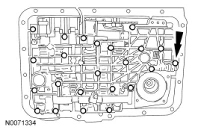 25. Remove the 23 valve body screws.