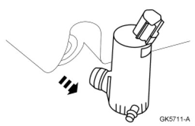 6. NOTE: When removing the washer pump from the washer reservoir, be sure not to damage the rubber grommet.