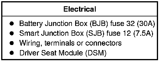 10. If no DTCs related to the concern are retrieved, GO to Symptom Chart. Driver Seat Module (DSM)