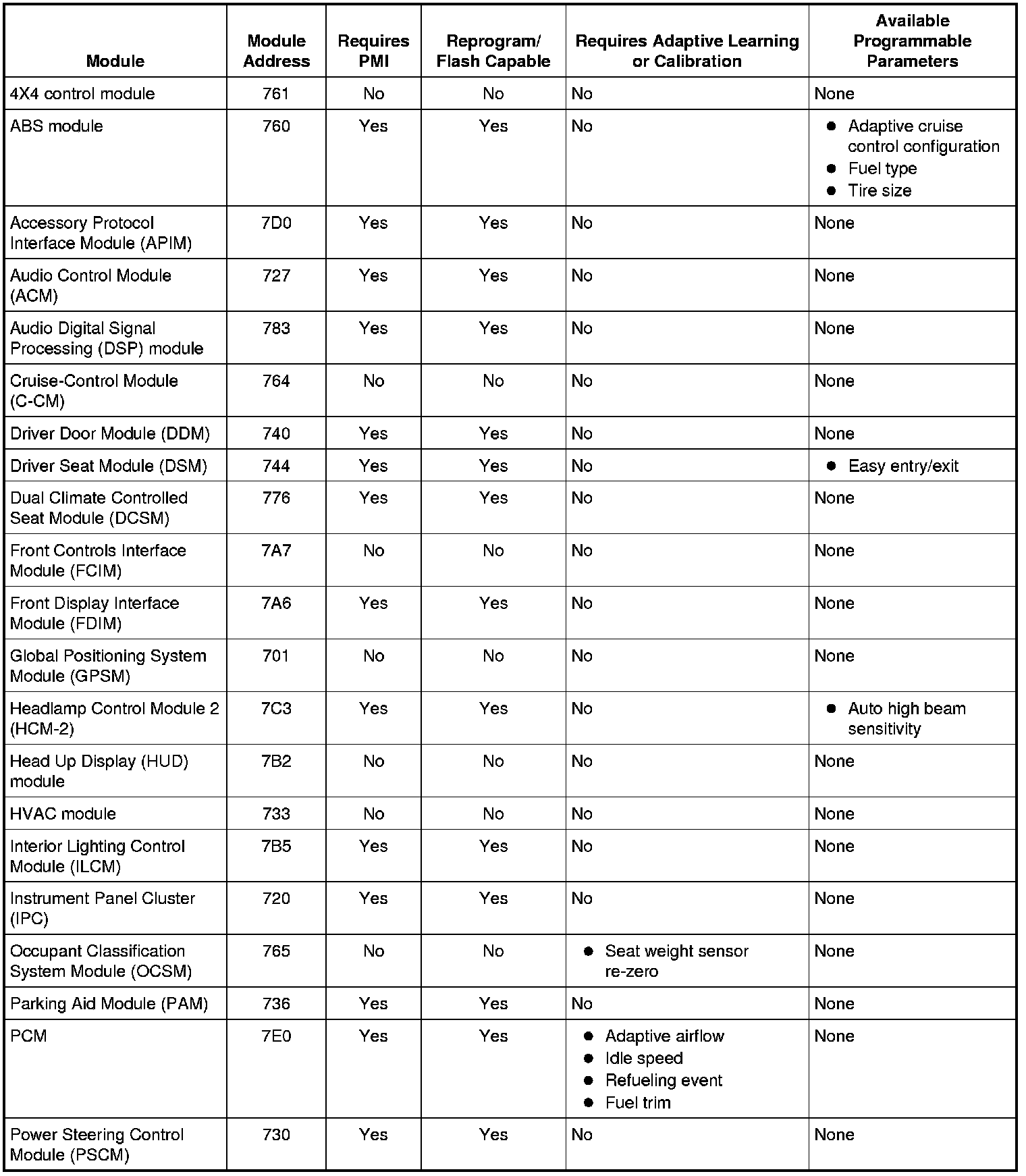 Programmable parameters are customer preference items that may be modified by the dealer via scan tool or in some cases modified by the customer following a procedure listed in the Owner's Literature. While many configuration options may exist for a module, only a few of these options are programmable parameters.
