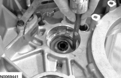 59. NOTICE: If the differential bearing cup is damaged, a new bearing and bearing cup must be installed or excessive noise or transaxle failure may occur.