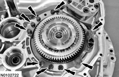68. Remove the 9 stator support assembly bolts.