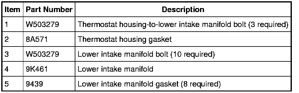 - Remove and discard the intake manifold and thermostat housing gaskets.