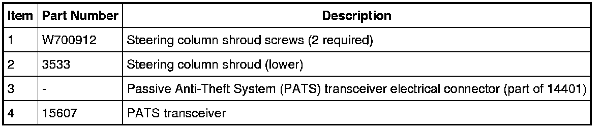 6. NOTE: Replacement of the PATS transceiver does not require the PATS keys to be programmed into the Instrument Cluster (IC) again.
