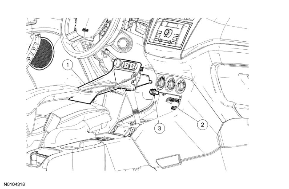 1. Using a suitable tool (such as a trim removal tool), remove the floor console front trim by releasing the clips.