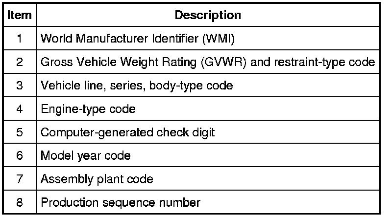 The eighth VIN position identifies the engine displacement and number of cylinders.