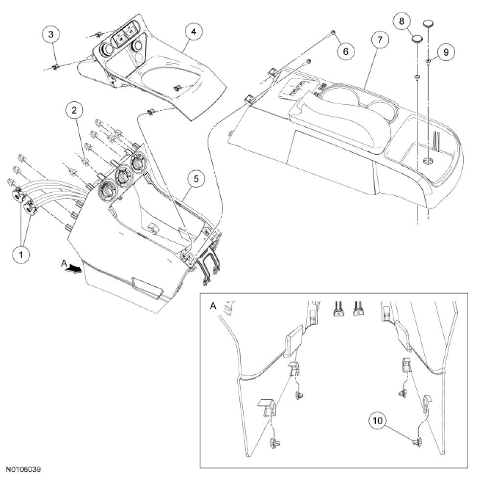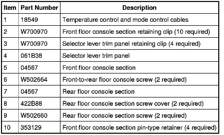 8. Remove the rear section of the floor console in the following sequence.