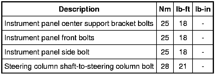 Dashboard / Instrument Panel: Specifications