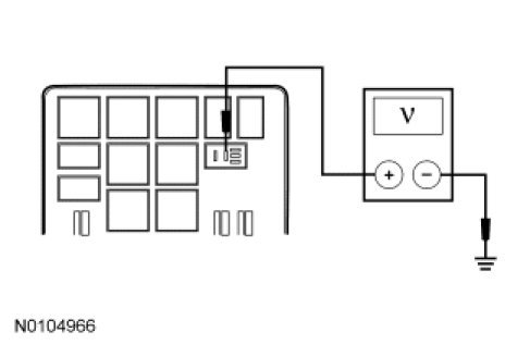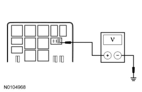 - Measure the voltage between the cargo door lock relay pin 5, circuit 30-AA27 (RD), CJB face side and ground.