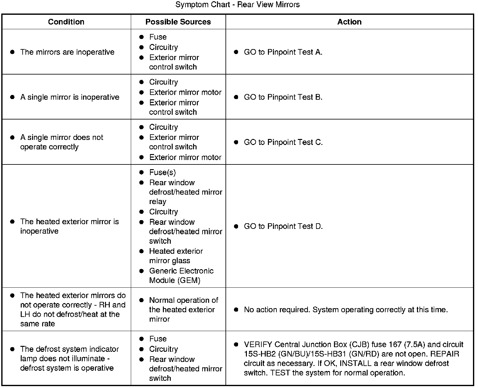 Symptom Chart - Rear View Mirrors