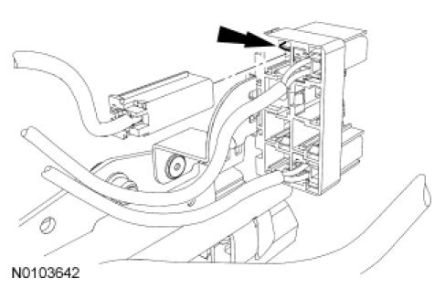 Insert a suitable tool to release the locking tab and remove the yellow side air bag module electrical connector from the seat electrical bulkhead connector. Separate the wire harness from under the seat.