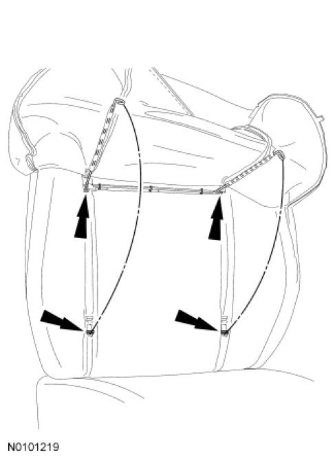 18. NOTICE: The head restraint guide sleeves are not interchangeable. Failure to install the correct head restraint guide sleeve at the correct position may result in component failure.