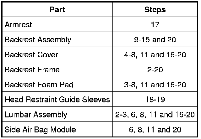 Seat Backrest Components - Removal Steps