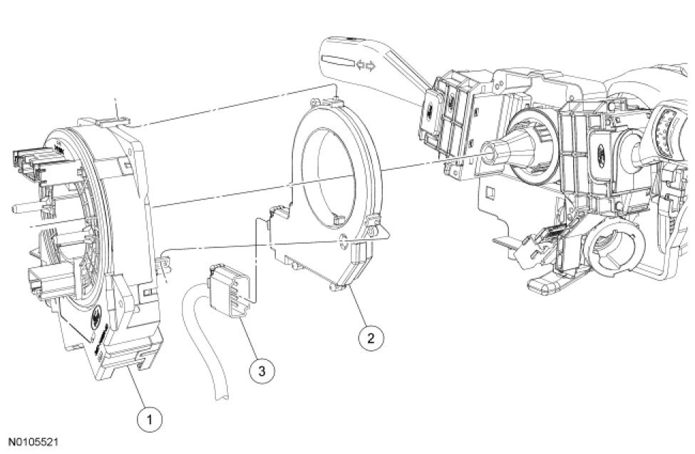 5. Install the clockspring. For additional information, refer to Restraint Systems.