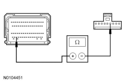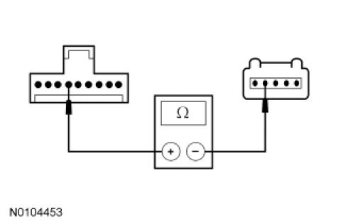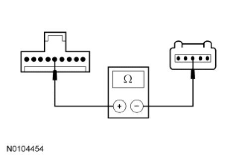 - Measure the resistance between the clockspring C218 pin 4, component side and the upper clockspring pin 2, component side.