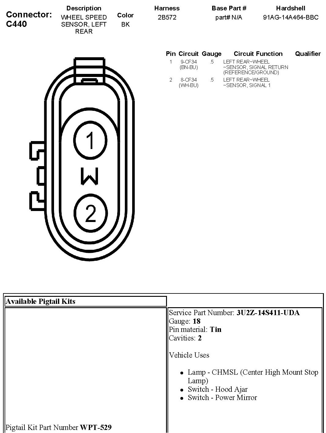 Wheel Speed Sensor, Left Rear