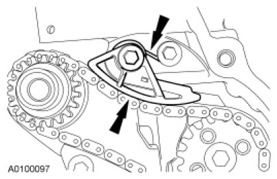 NOTE: If the timing chain tensioner plunger and ratchet assembly are not pinned in the compressed position, follow the next 4 steps.
