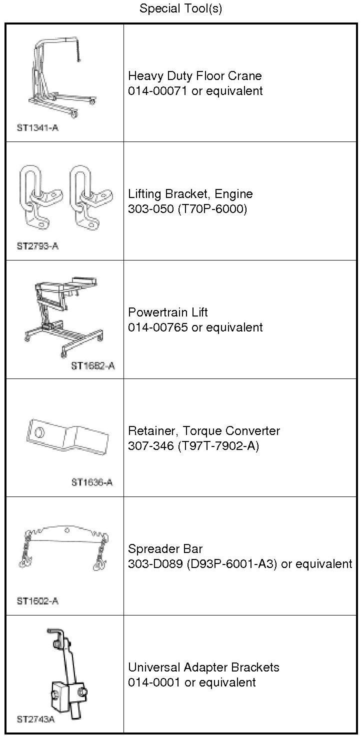 49. Using the Powertrain Lift and Universal Adapter Brackets, secure the engine to the lift table.