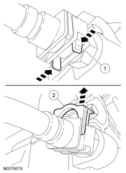21. Remove the transmission fluid cooler tube secondary latches.