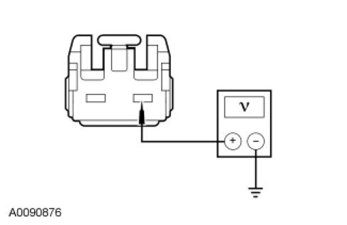 - Measure the voltage between blower motor C288-1, circuit 15-FA18 (GN/OG), harness side and ground.