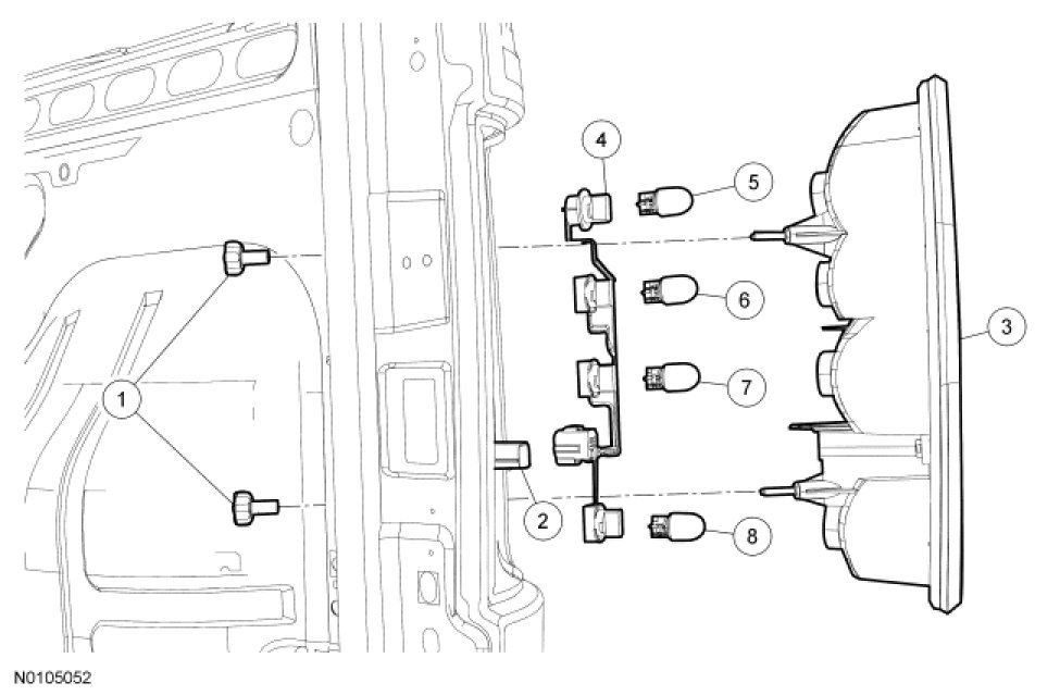 1. Remove the 2 fasteners and the rear lamp assembly.