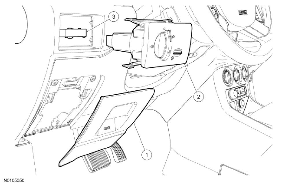 2. NOTE: The instrument panel dimmer switch is removed by reaching through the fuse cover opening and pushing it from behind.