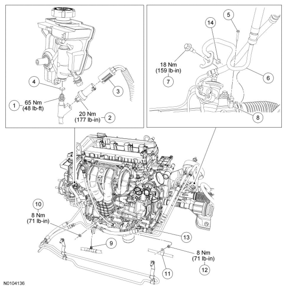 17. Fill the power steering system. For additional information, refer to Steering.
