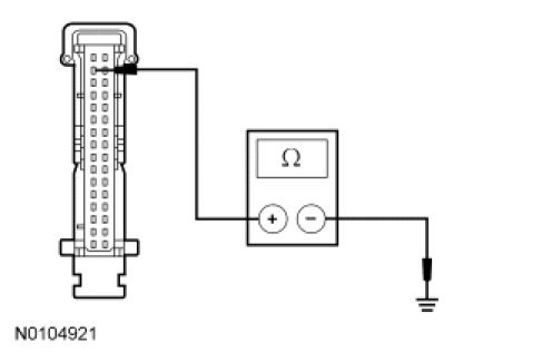 - Measure the resistance between the IC C220b-2, circuit 91-GC14 (BK/OG) harness side and ground.