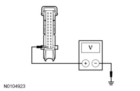 - Measure the voltage between the PAM C2023-1, circuit 15-GN10 (GN/YE), harness side and ground.