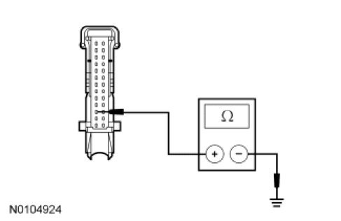 - Measure the resistance between the DLC C251-7, circuit 8-EE13 (WH/RD), harness side and ground.