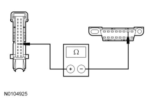 - Measure the resistance between the PAM C2023-5, circuit 8-EE13 (WH/RD), harness side and the DLC C251-7, circuit 8-EE13 (WH/RD), harness side.