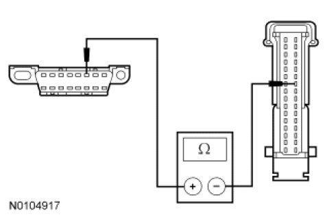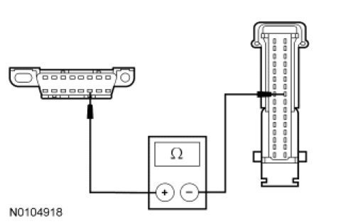 - Measure the resistance between the PCM C175b-59, circuit 4-EC7 (GY/RD), harness side and the DLC C251-6, circuit 4-EC7 (GY/RD)/4-EC8 (GY/VT), harness side.