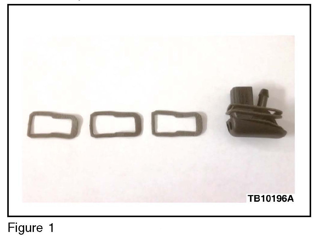 2. Remove both washer jet nozzles from the hood and replace the gasket with 3 gaskets - stacked on top of each other. (Figure 1)
